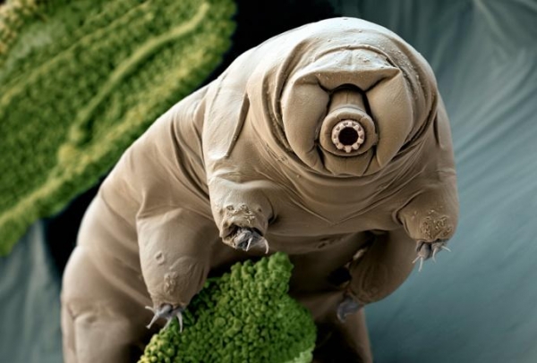 Тардиграды, водяные медведи, тихоходки, обитатели водных пространств, ледников и пустынь. В настоящее время известно около 900 их видов. Из-за микроскопических размеров и способности переносить неблагоприятные условия распространены они повсеместно. После того как тихоходок стали находить в горячих источниках и на морском дне, ученые задумались, не могут ли эти животные выдержать более жесткие условия. В 1998-м исследователи доказали, что этот «зверь», находясь в 10-летнем летаргическом сне, демонстрирует признаки жизни. В том же году японцы Кунихиро Секи и Масато Тоёсима поместили обезвоженных тихоходок в микроконтейнеры, опустив их в жидкий перфторуглеводород. Тихоходки 20 минут находились под давлением 600 мегапаскаль – в 6 раз больше, чем на дне Марианской впадины. После этих экзекуций около 90 % их выжило, и это при том, что все известные бактерии умирают ещё при давлении 200 мегапаскаль. В 2007-м тихоходки побывали в далекой галактике на биоспутнике Фотон-М3. Там взрослые особи в безвоздушной среде подверглись атаке прямых солнечных лучей и воздействию температуры космического пространства (–272 °С). После такого испытания выжили 68 % животных, большинство затем вполне благополучно размножались. Яйца тихоходок, побывавшие в открытом космосе, по жизнеспособности вообще не отличались ото всех остальных.